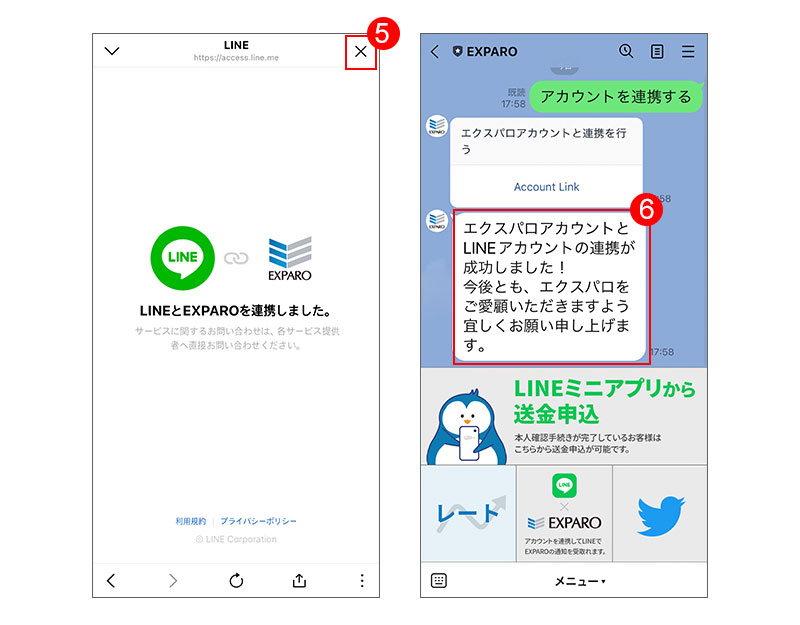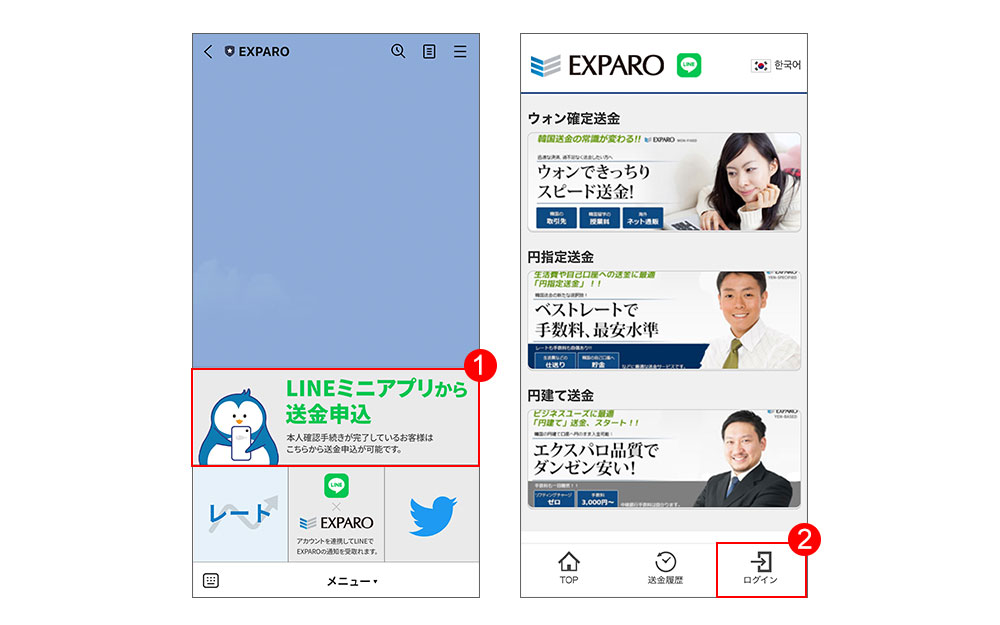 エクスパロでは会員様に便利にご利用頂けるよう、LINE miniアプリによる送金が可能です。
