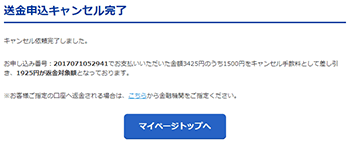 キャンセル処理が完了した旨のメッセージが表示されます。