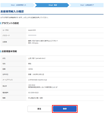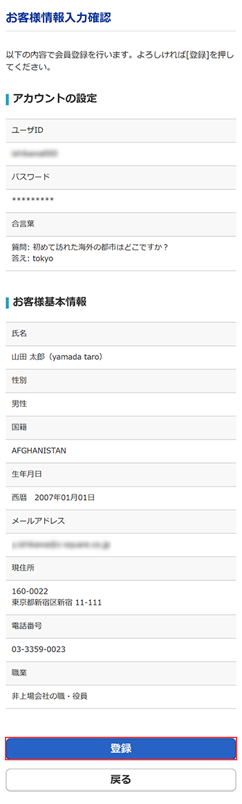 入力した内容を確認し、誤りがなければ[登録]ボタンをクリックします。