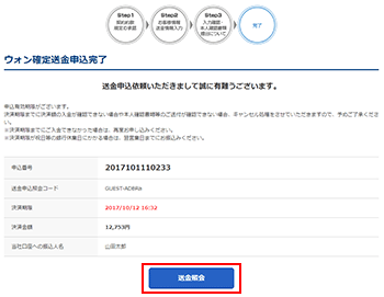 またゲスト会員送金状況確認ページからもご確認いただけます。