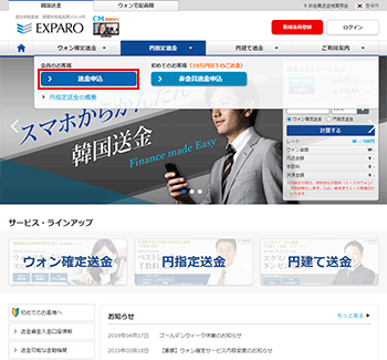 会員登録され、会員として送金申込される場合の送金申込方法はこちら