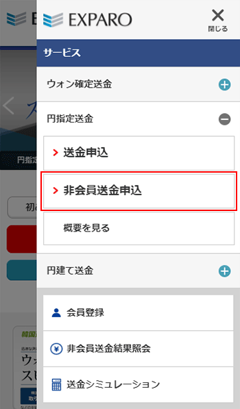 円指定送金申込方法(ゲスト会員)