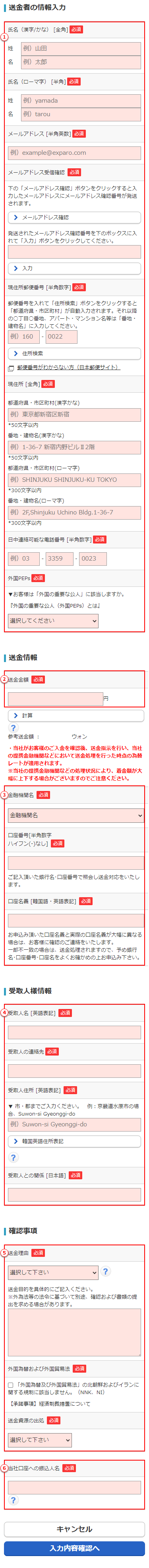 - ※本人確認書類のご送付が確認できない場合や、本人確認書類記載の情報から送金依頼人様がご本人様であることを確認できない場合、韓国への送金を行うことはできません。