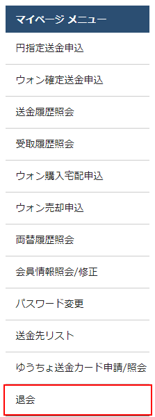 会員マイページメニューから[退会]を選択します。