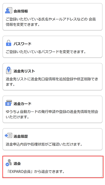 EXPARO会員より退会する方法をご案内致します。