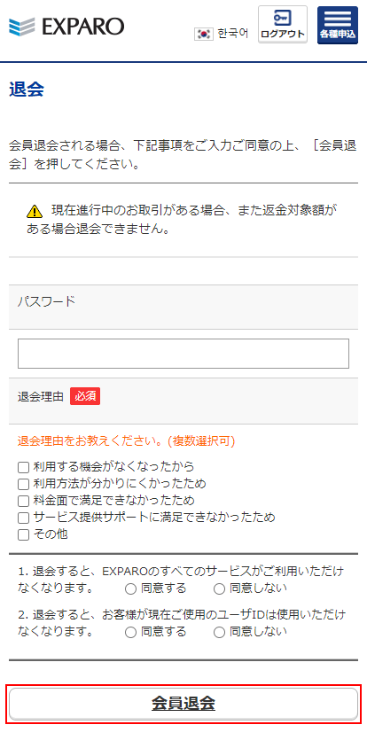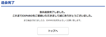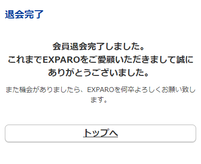 EXPARO会員から退会が完了します。