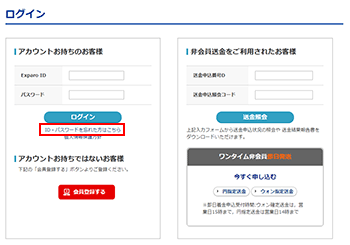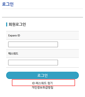 [로그인]페이지에서,[ID・패스워드 찾기]를 클릭하세요.