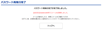 입력하신 회원 ID와 이메일 주소가 일치할 경우, 패스워드 재발행 완료 화면이 표시됩니다.