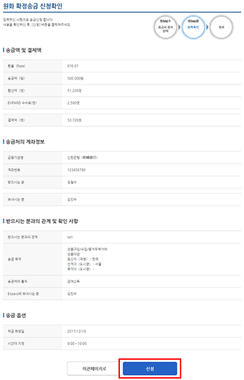송금신청 내용에 틀림이 없는지 확인해 주시기 바랍니다.