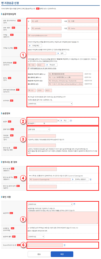 엔 지정 송금신청폼 작성 방법 (비회원용)