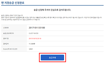 또는, 비회원 송금신청 확인 페이지에서 확인이 가능합니다.